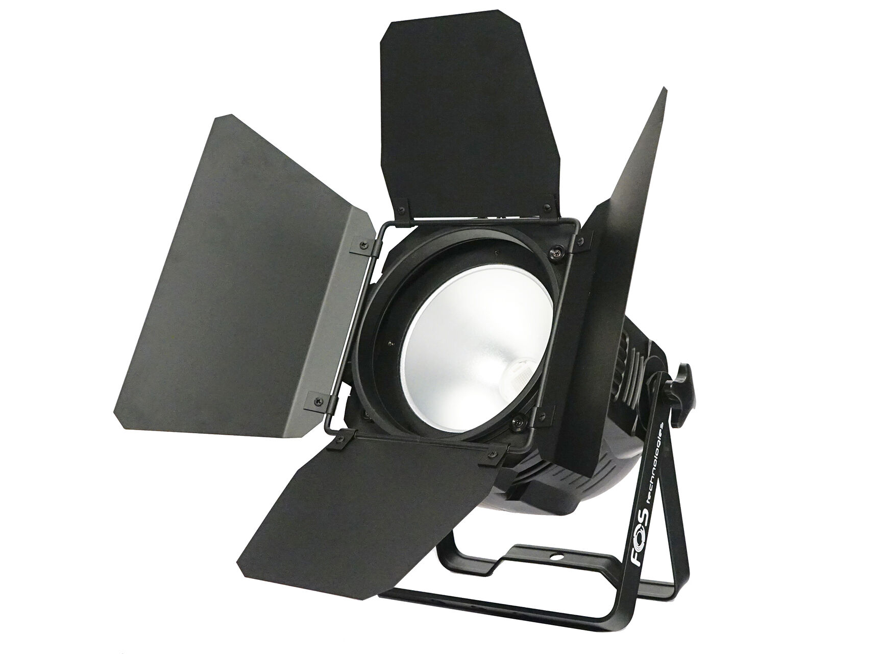 Mit einem Abstrahlwinkel von 60 Grad und einer 0-100% linearen Dimmung ermöglicht der FOS COB Par 200 RGBW eine präzise Steuerung der Lichtintensität. Die mitgelieferten Barndoors (Lichtklappen) ermöglichen eine flexible Anpassung des Abstrahlwinkels und verhindern unerwünschte Streulichteffekte. Die DMX-Steuerung mit 4 oder 8 Kanälen bietet flexible Integrationsmöglichkeiten in bestehende Lichtanlagen.