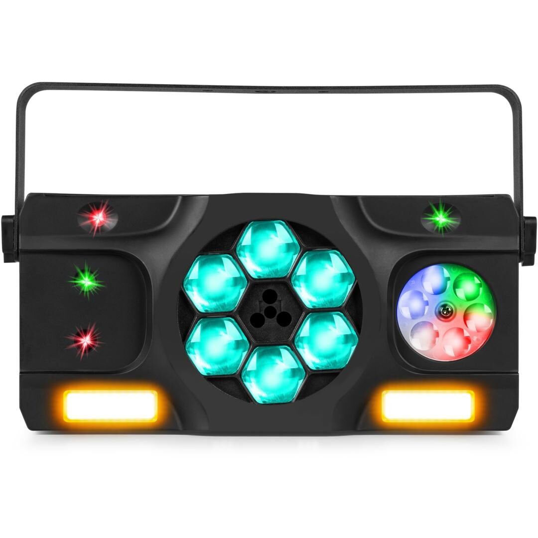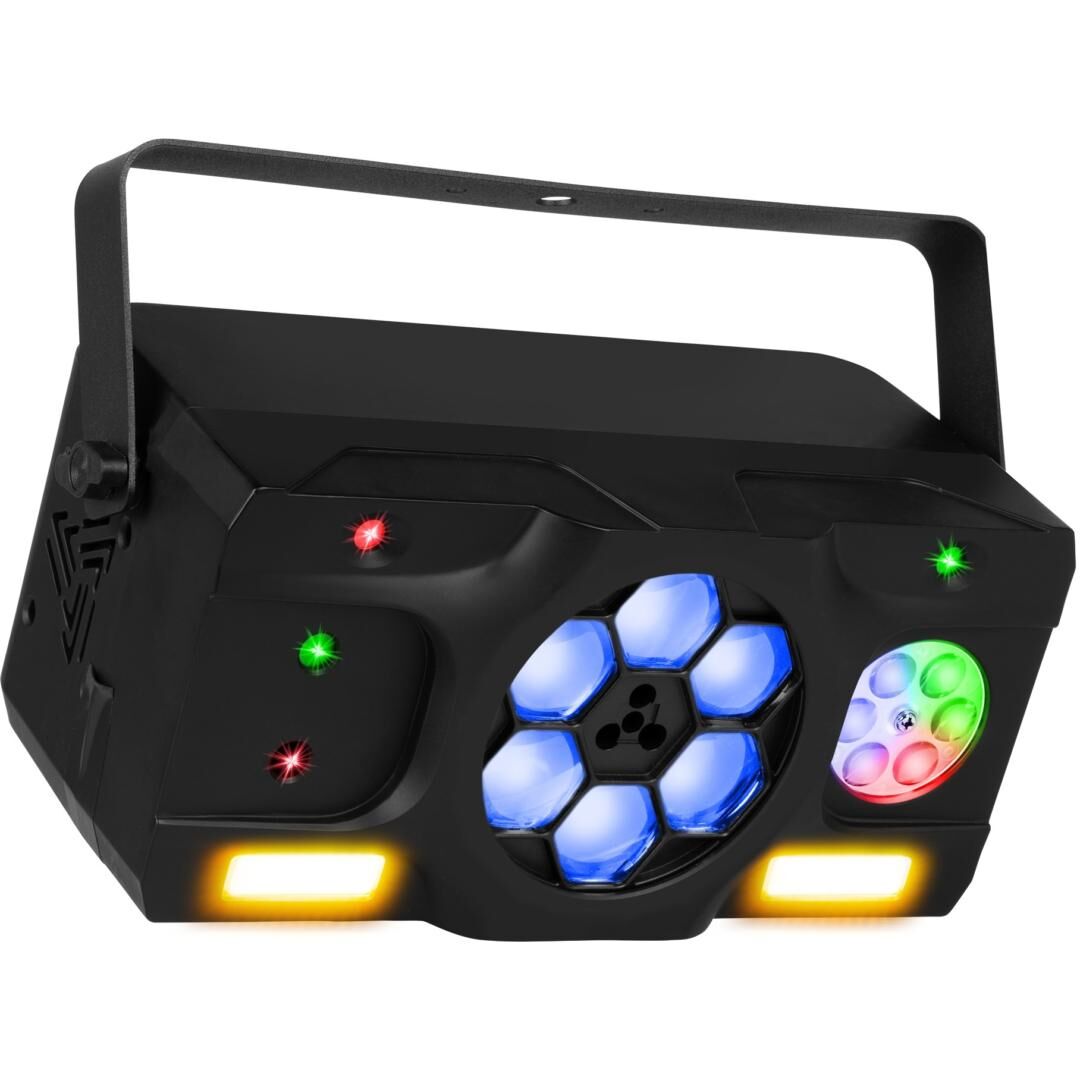 Highlights- 5-in-1 Lichteffekt: Bee Eye, Gobo-Projektor, Strobe und Double-Pattern (Rot/Grün)