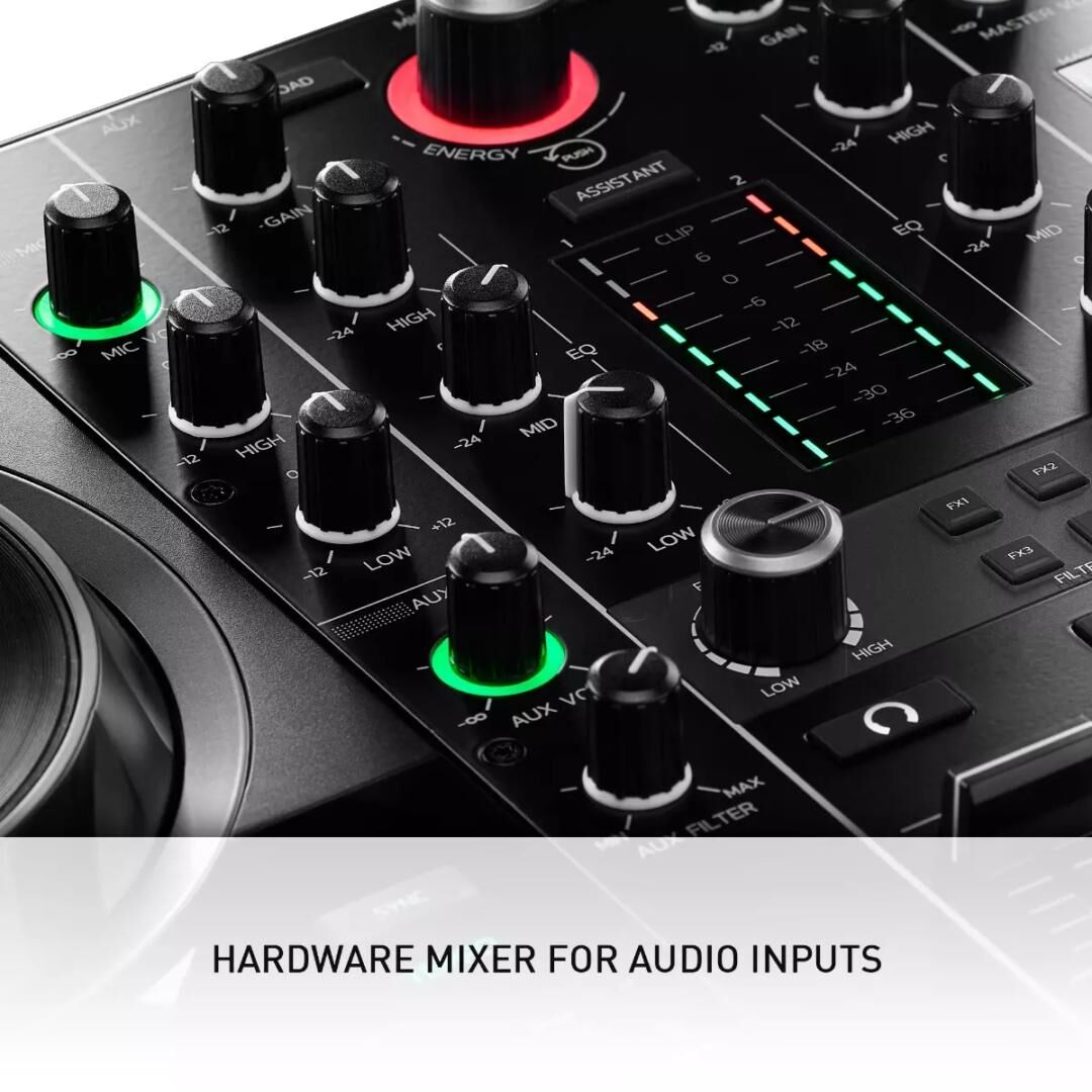 - 2-Deck USB-DJ-Controller mit integriertem Audiointerface und Hardware-Eingangsmixer