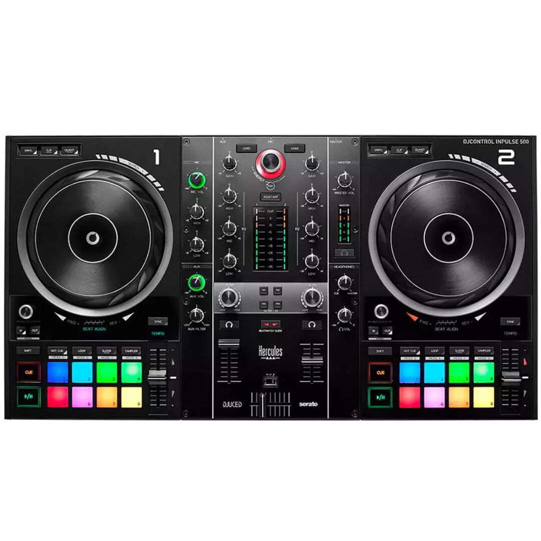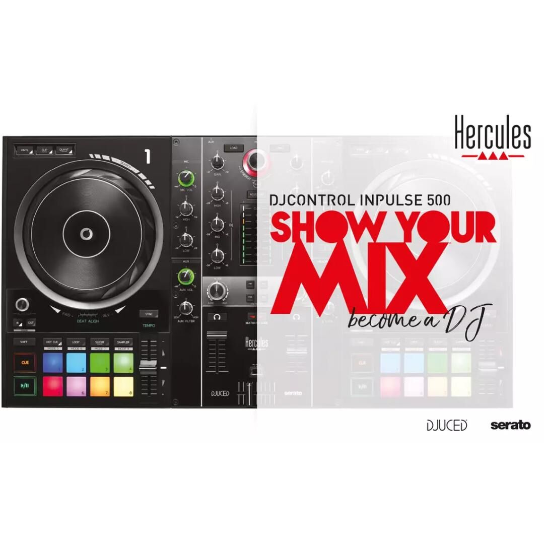 Der Hercules DJControl Inpulse 500 ist ein durchdachter 2-Deck USB-DJ-Controller für den Auftritt vor Publikum – vom ersten Club-Gig bis zur Hochzeitsparty. Mit integriertem Audiointerface, praxisnahen Bedienelementen und einer robusten Bauweise verbindet das Modell klare Bedienbarkeit mit verlässlicher Performance. Serato DJ Lite und DJUCED sind im Lieferumfang enthalten, sodass Sie sofort starten können; zugleich ist der Controller vollständig kompatibel mit Serato DJ Pro.