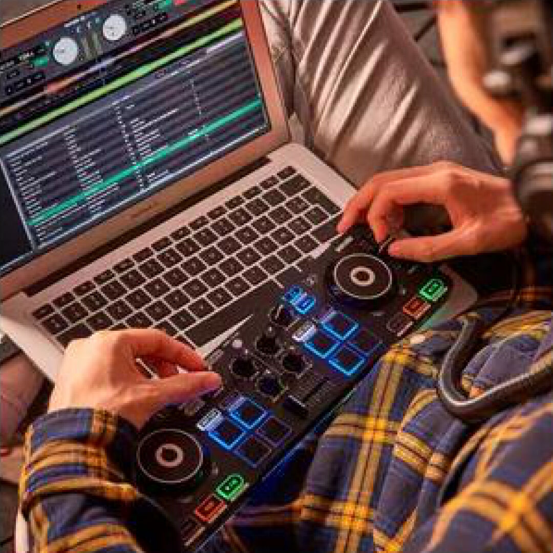 Ein besonderes Merkmal des DJControl Starlight ist die steuerbare Basisbeleuchtung: Die RGB-Lichter inklusive Stroboskopeffekt unterstützen visuell und lassen sich direkt in Serato DJ Lite anpassen. So erhalten Sie auf Wunsch optisches Feedback beim Mixen und können kleine Setups stimmungsvoll in Szene setzen – ideal für Bedroom-DJs, Proberaum und spontane Sessions.