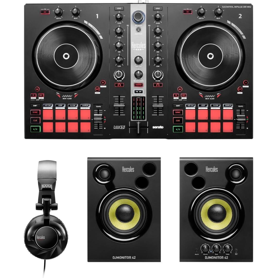 - Lieferumfang: DJControl Inpulse 300 MK2 + USB-Kabel; DJMonitor 42 + Netzkabel + Audiokabel; HDP DJ60 + 3,5→6,35 mm Adapter; Softwarelizenzen für DJUCED & Serato DJ Lite
