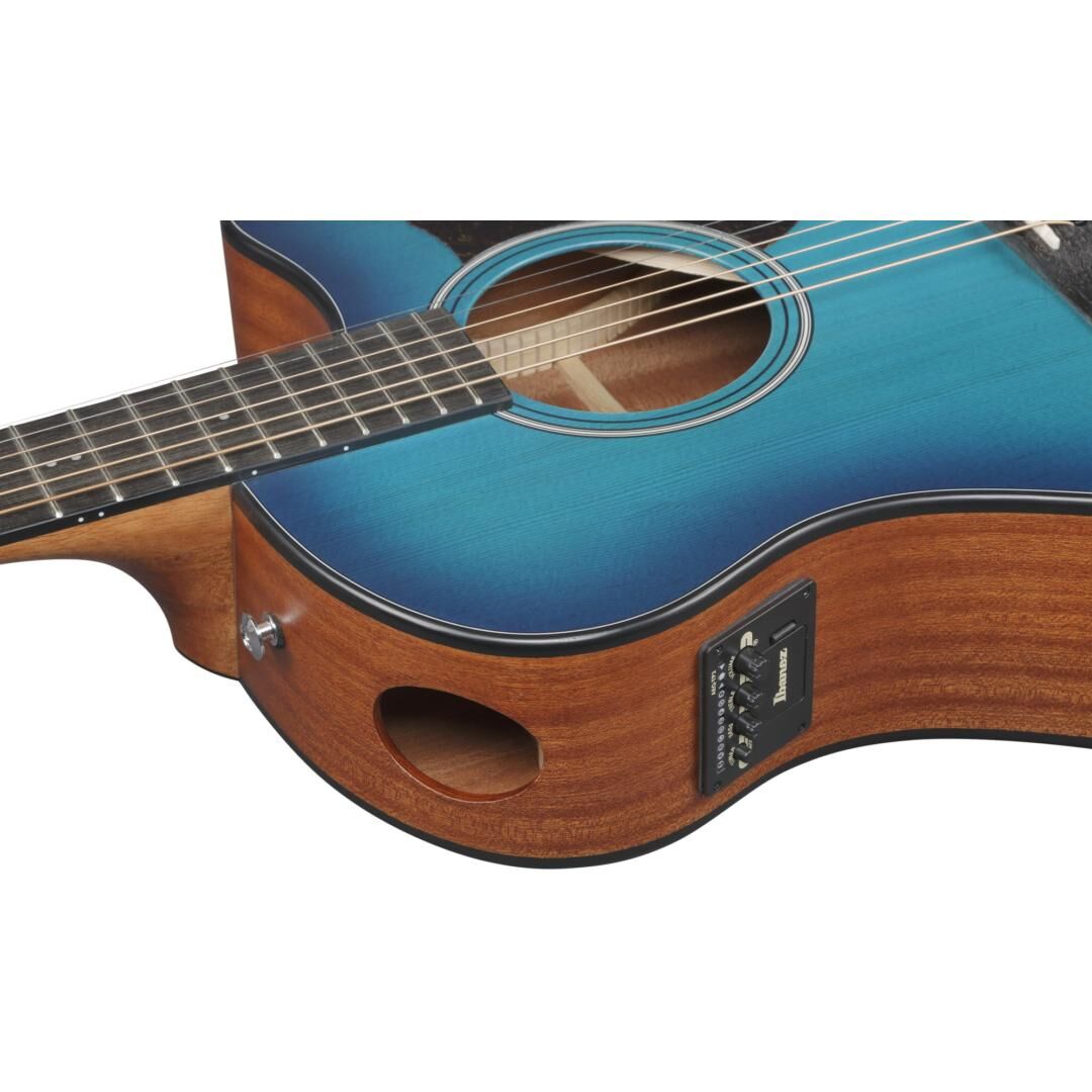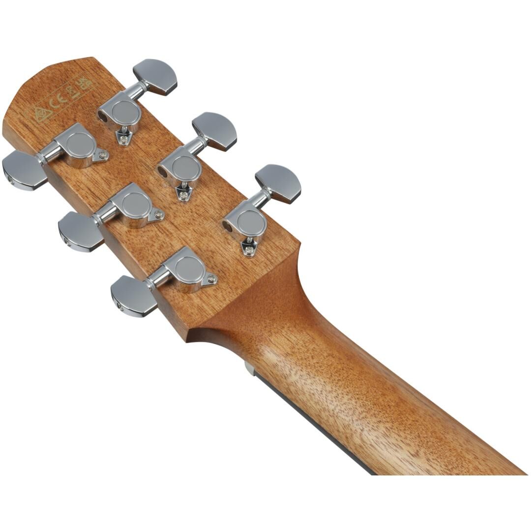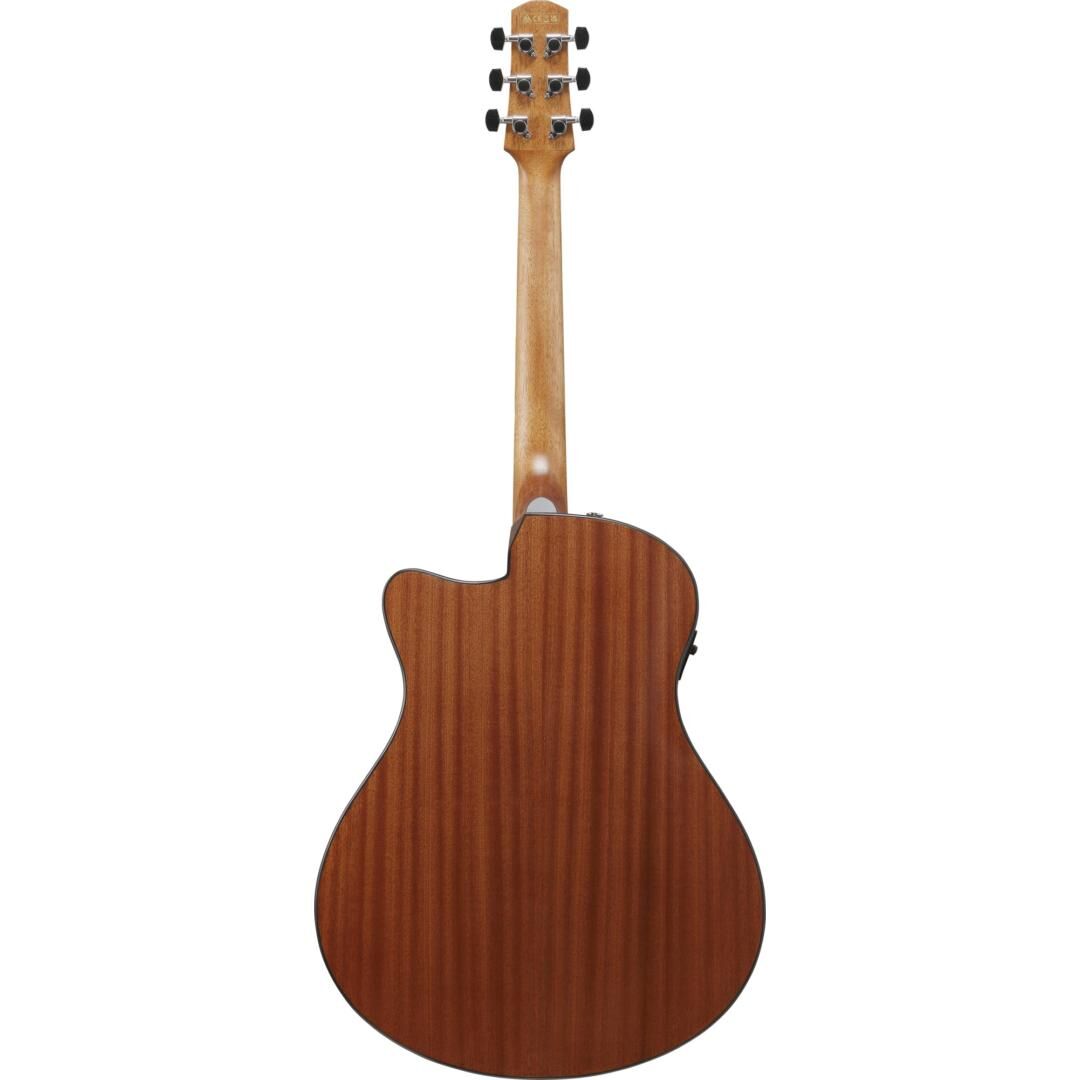 Die AAM50CE kommt mit den AAM serienspezifischen Features wie den A.I.R.port, X-M Bracing und dem Advanced Auditorium Korpus. Sie ist zudem mit einem Okoume Hals, einem Purpleheart Griffbrett, einer massiven Sitka Fichtendecke und Sapele Boden & Zargen ausgestattet. Außerdem bietet die Gitarre einen Ibanez T-bar Undersaddle Tonabnehmer, einen Ibanez AEQ-TP2 Preamp mit eingebautem Stimmgerät und einen Purpleheart Steg.