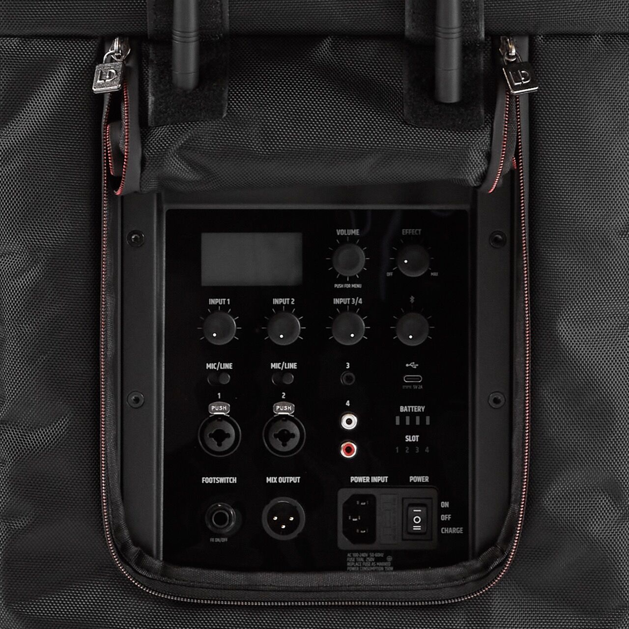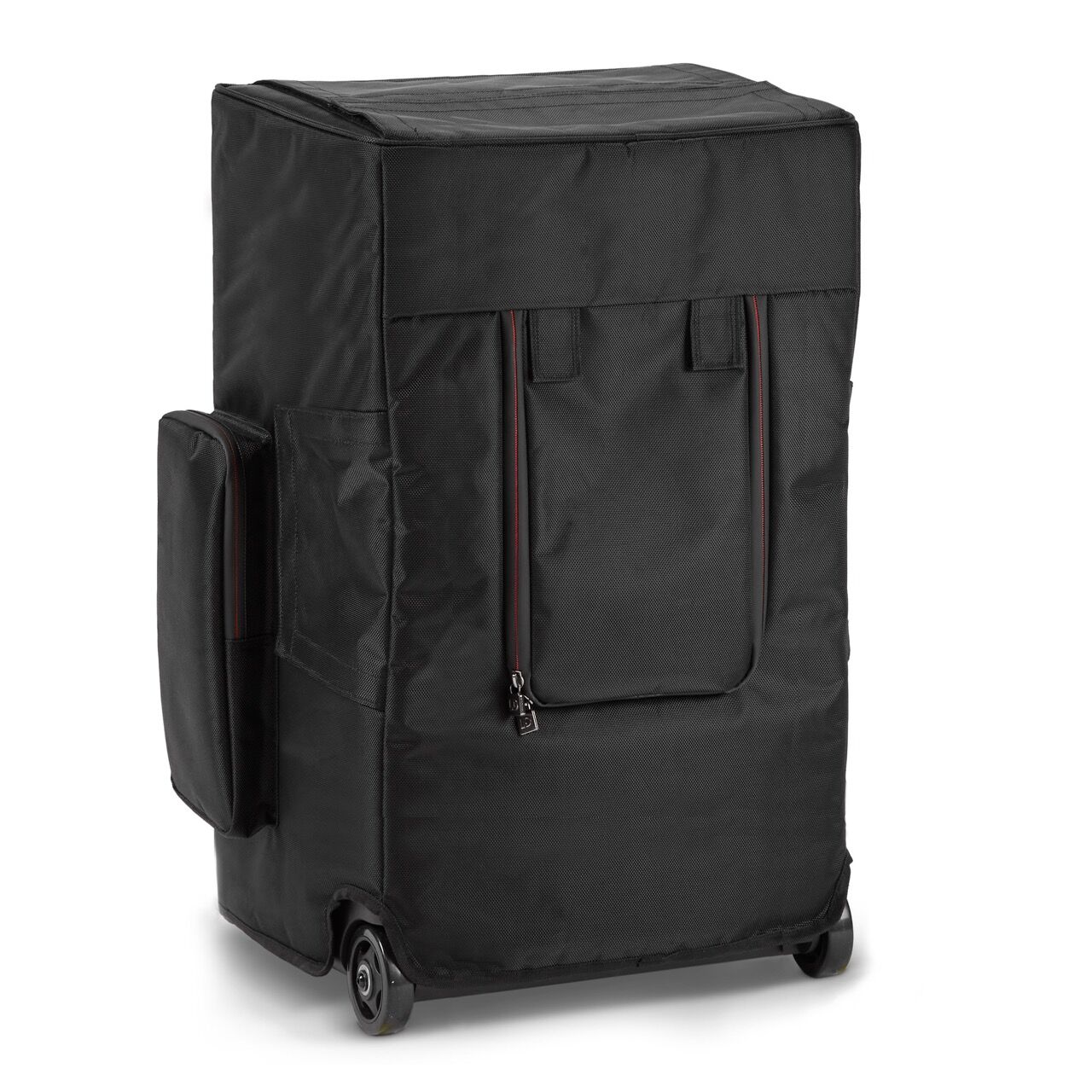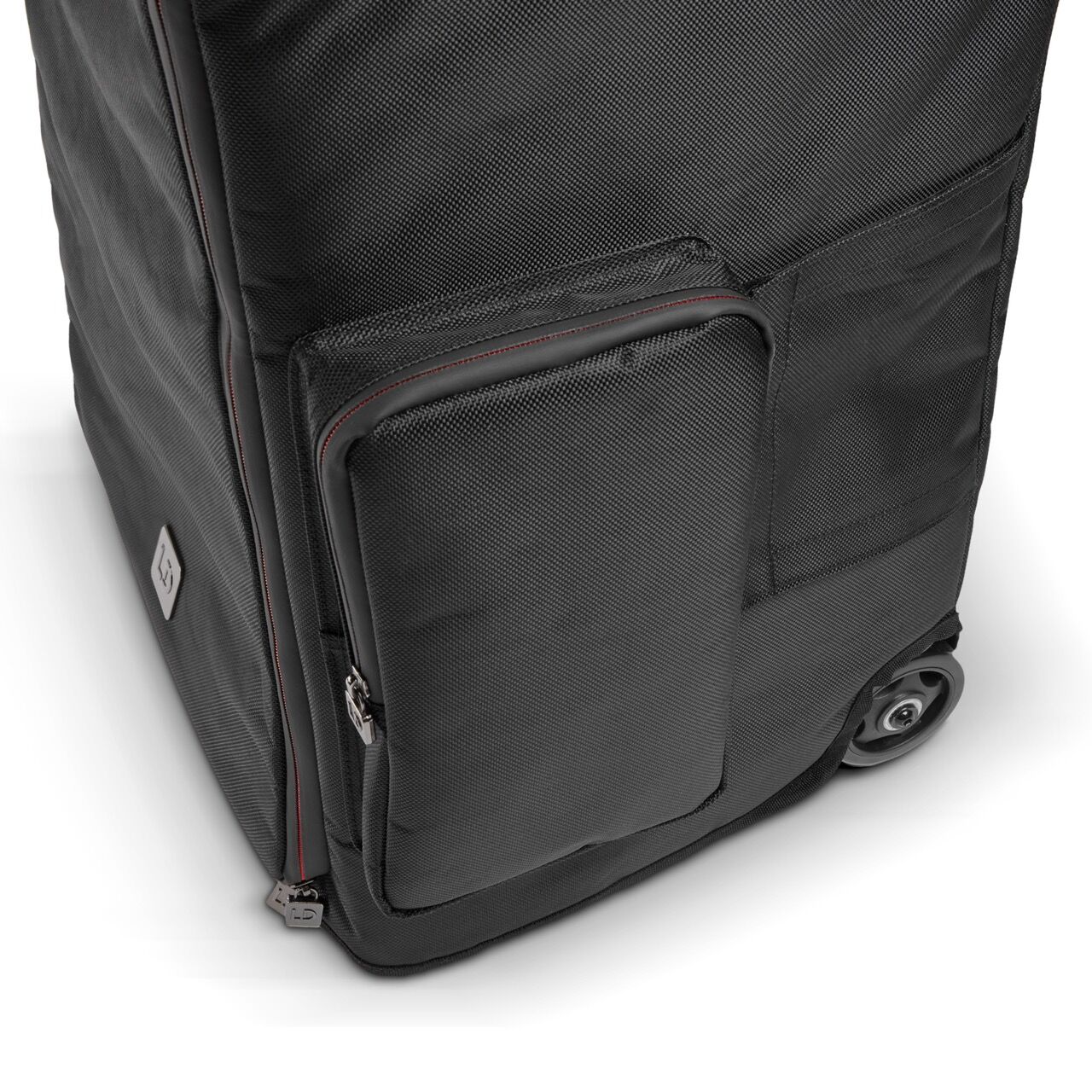 Die 8 mm dicke Polsterung sorgt für zusätzlichen Schutz, während die roll-up Front den Betrieb des Lautsprechers mit aufgesetzter Hülle ermöglicht. Praktische Öffnungsklappen für Auszieh- und Tragegriffe, Bedienfeld, Antennen und Anschlüsse garantieren uneingeschränkte Funktionalität.