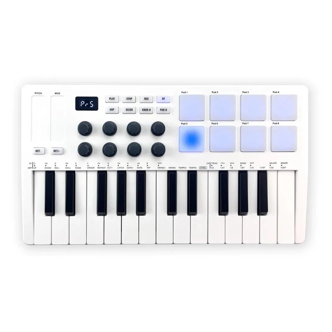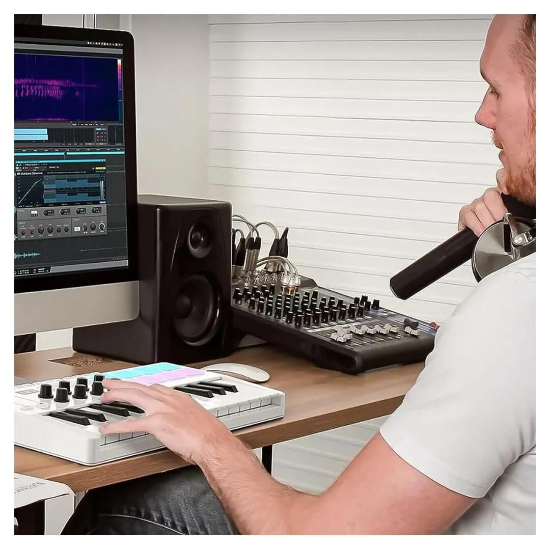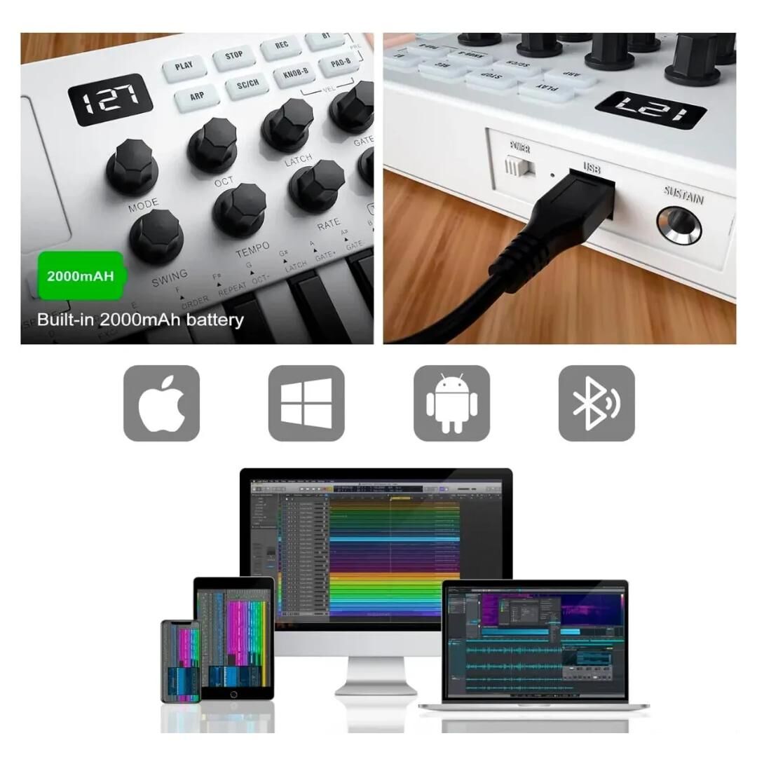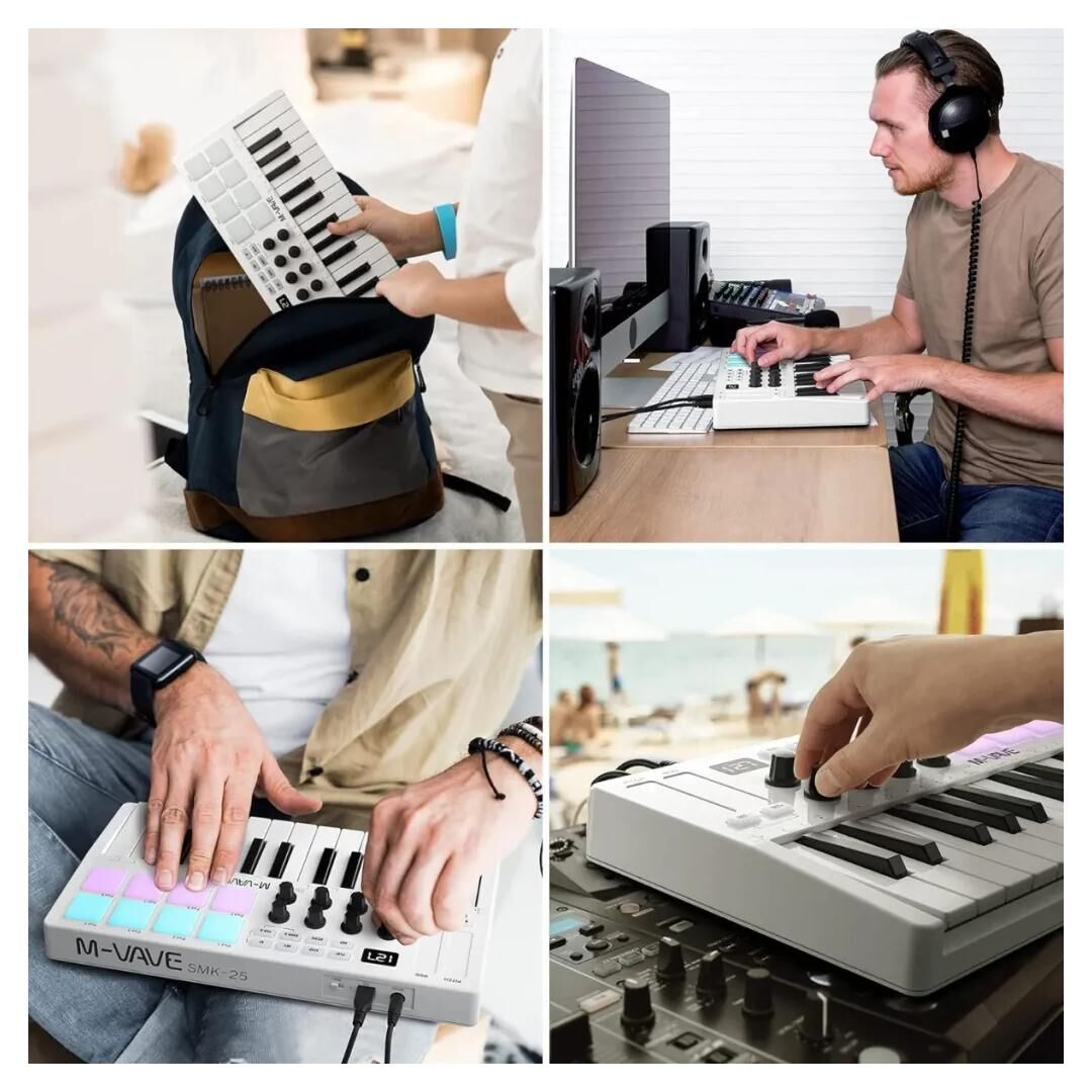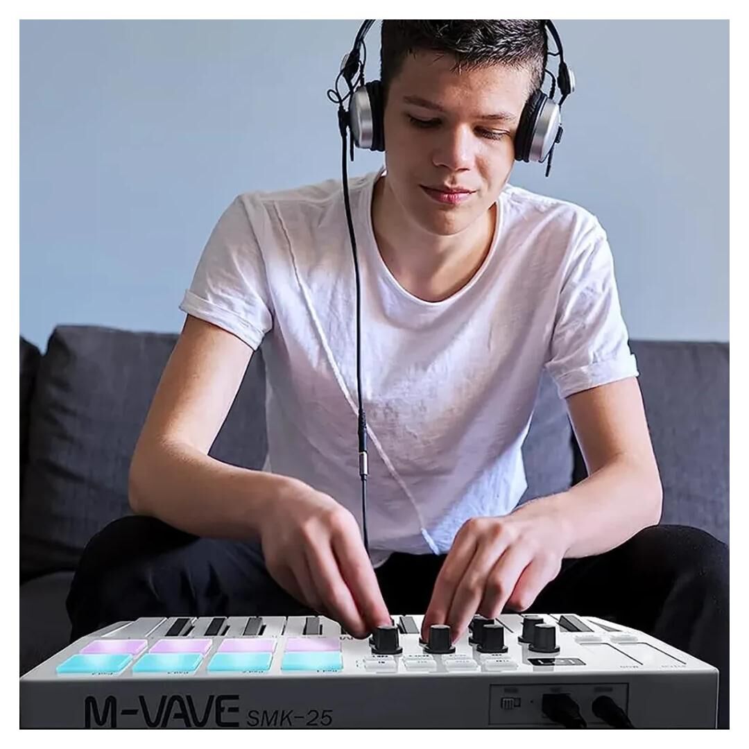 Das M-Vave 25 Key ist eine effektive und leicht zu bedienende Controller für Songwriter, Beatmaker und DJs, die es sowohl für die Musikproduktion als auch für Live-Auftritte verwenden können. Es ist kompatibel mit allen gängigen Betriebssystemen und Musikproduktionssoftware (DAW) und kann sowohl per USB als auch per Bluetooth angeschlossen werden.