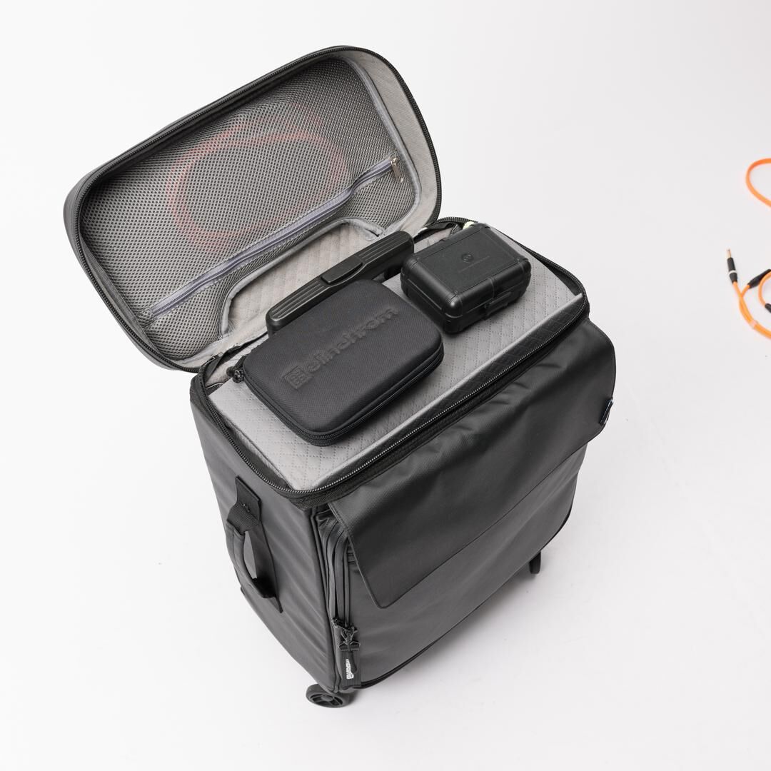 Der Magma SOLID BLAZE CABIN-TROLLEY ist der erste 4-Rad-DJ-Trolley, der für ultimativen Komfort entwickelt wurde. Dieser Trolley ermöglicht es DJs und Musikproduzenten, sich auf Reisen zu ihren Auftritten problemlos auf Flughäfen, Bahnhöfen und anderen Orten zu bewegen. Er bietet eine sichere Transportmöglichkeit für essenzielle Ausrüstung wie Laptops, Mischpulte, Drum-Sampler, DAW-Controller und 12-Zoll-Schallplatten. Das Design des SOLID BLAZE CABIN-TROLLEY berücksichtigt die Bedürfnisse moderner, umweltbewusster Künstler.