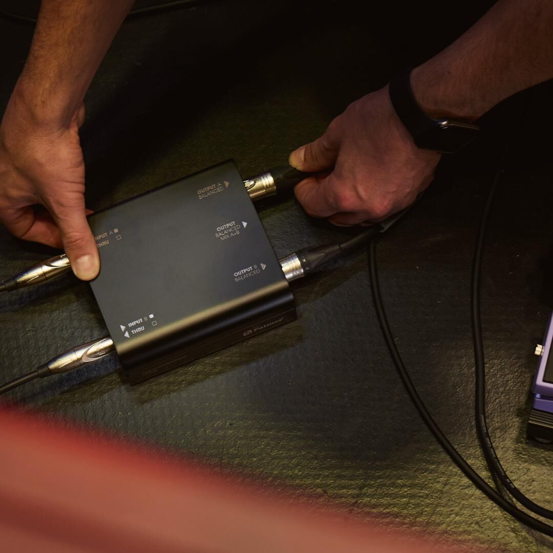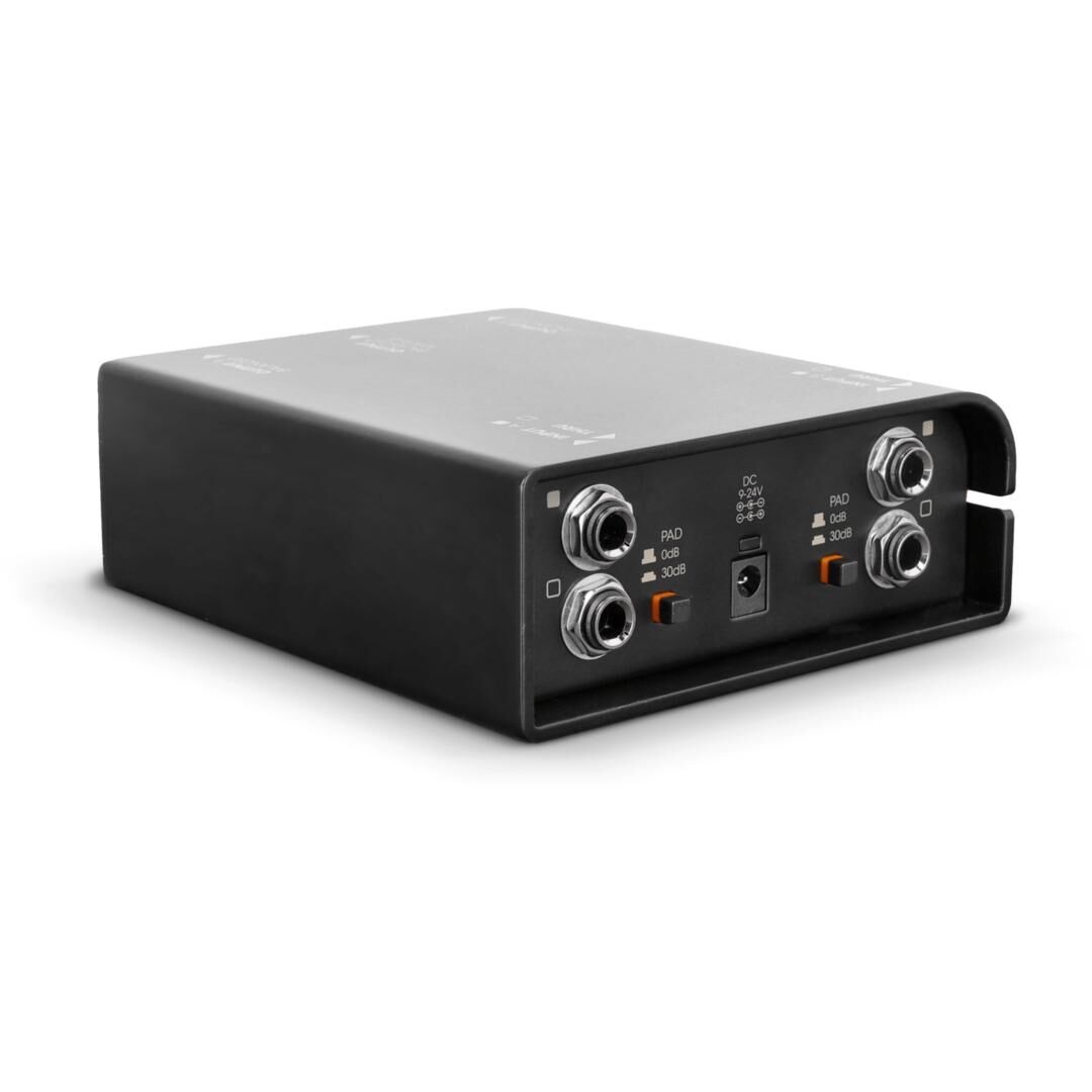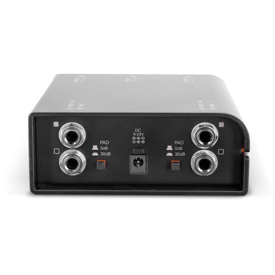 Highlights- Aktive 2‑Kanal DI‑Box für Stereo-Quellen oder zwei Instrumente