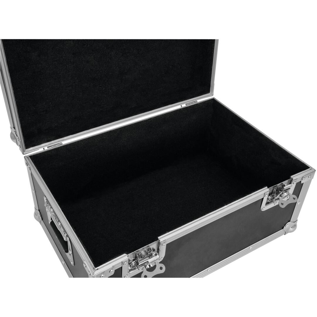 Das Case wird aus stabilem, mehrlagig verleimtem Schichtholz mit einer Dicke von 7 mm gefertigt. Die schwarze, laminierte Oberfläche sorgt nicht nur für eine professionelle Optik, sondern bietet auch eine widerstandsfähige Oberfläche gegen Kratzer und leichte Stöße. Ein solides Fundament ist entscheidend für die Langlebigkeit eines Transportkoffers.