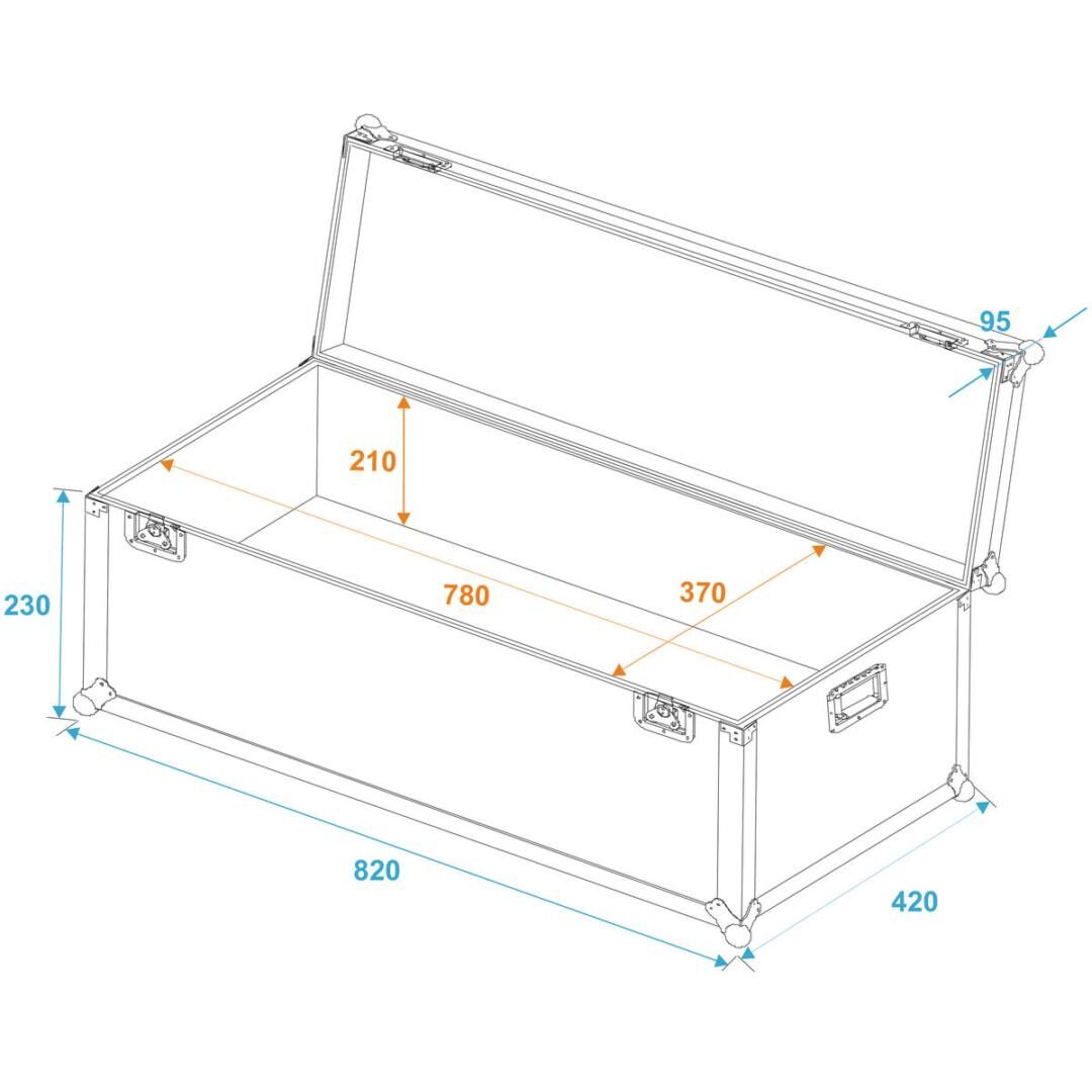 Praktische Features wie die stapelbaren Stahlkugelecken erleichtern nicht nur den Transport, sondern auch die Lagerung, indem mehrere Cases sicher übereinander gestellt werden können. Mit einem Gesamtgewicht von 9,10 kg und den äußeren Abmessungen von 82 cm Breite, 42 cm Tiefe und 33 cm Höhe bleibt das Case handlich, trotz seiner robusten Konstruktion.