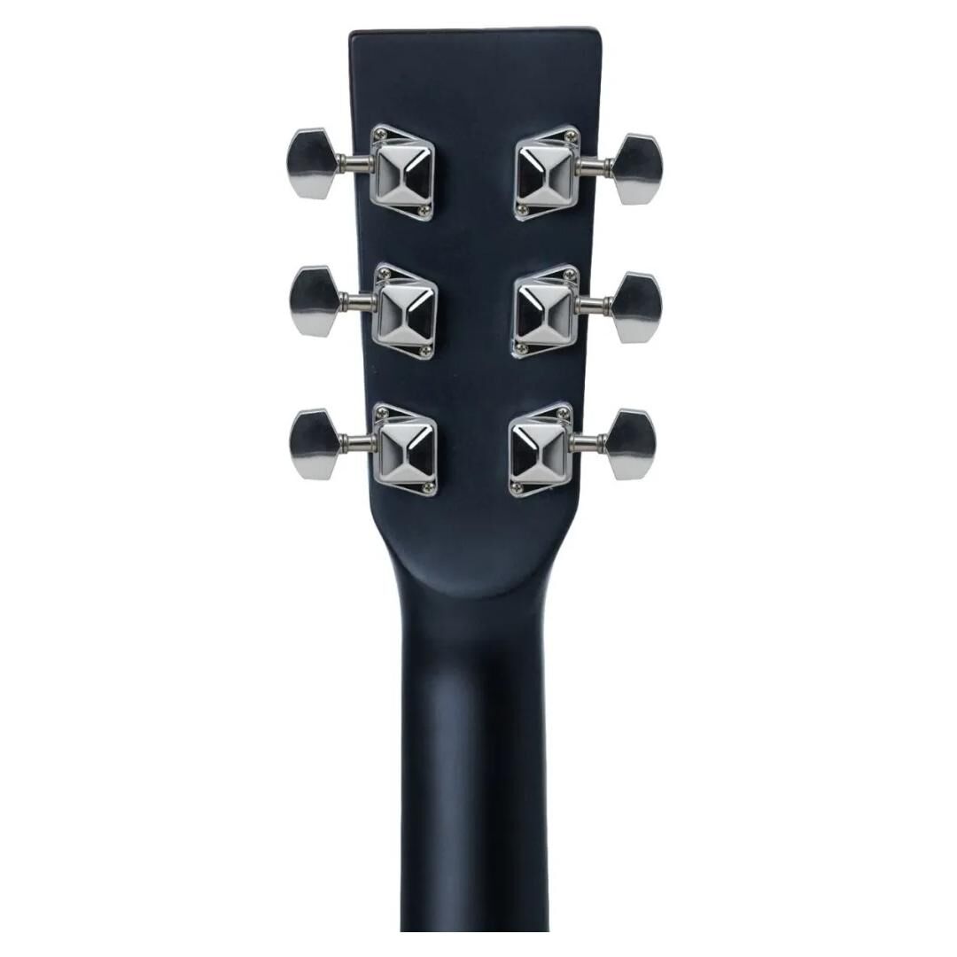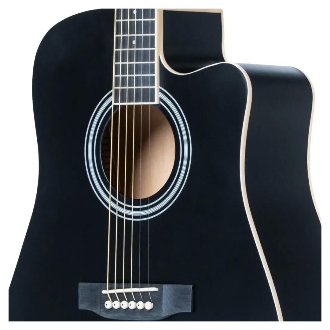 Die laminierte Fichtendecke (Top: Spruce) liefert Klarheit und Ansprache, während Boden und Zargen aus Linde (Basswood) für Wärme und runde Mitten sorgen. In der bewährten Dreadnought-Form bietet der Korpus viel Volumen, präsente Bässe und gute Projektion – ideal für Strumming, Akkordbegleitung und Fingerpicking. Der Cutaway erleichtert den Zugang zu den hohen Lagen, sodass Sololinien und Melodieläufe bequem erreichbar bleiben.