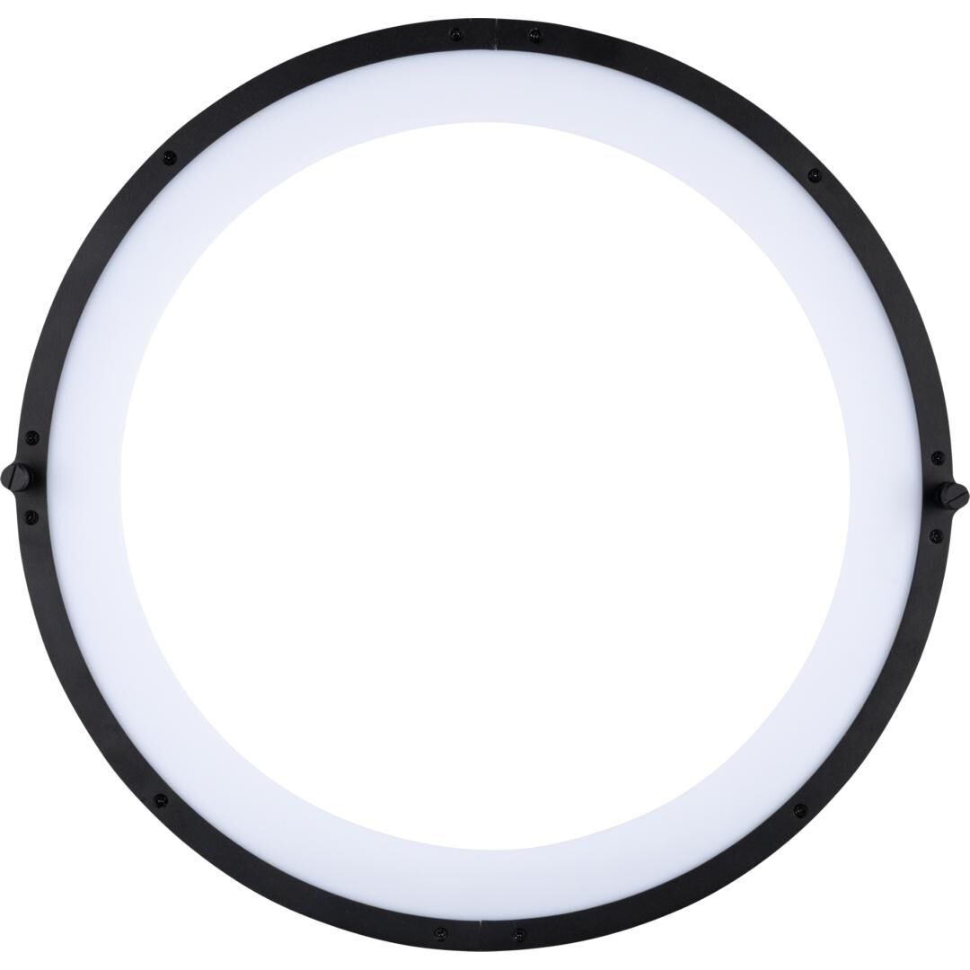 Die robuste Metallkonstruktion ist auf Langlebigkeit ausgelegt. Mit einer geringen Bauhöhe von 12 mm trägt der Ring-Diffusor kaum auf und bleibt im Rig dezent. Dank seiner quadratischen Außenmaße von 420 x 420 mm ist er kompakt genug für Cases und Standard-Fächer, gleichzeitig großflächig genug, um das Ringlicht der Lumina Sola wirkungsvoll zu streuen.