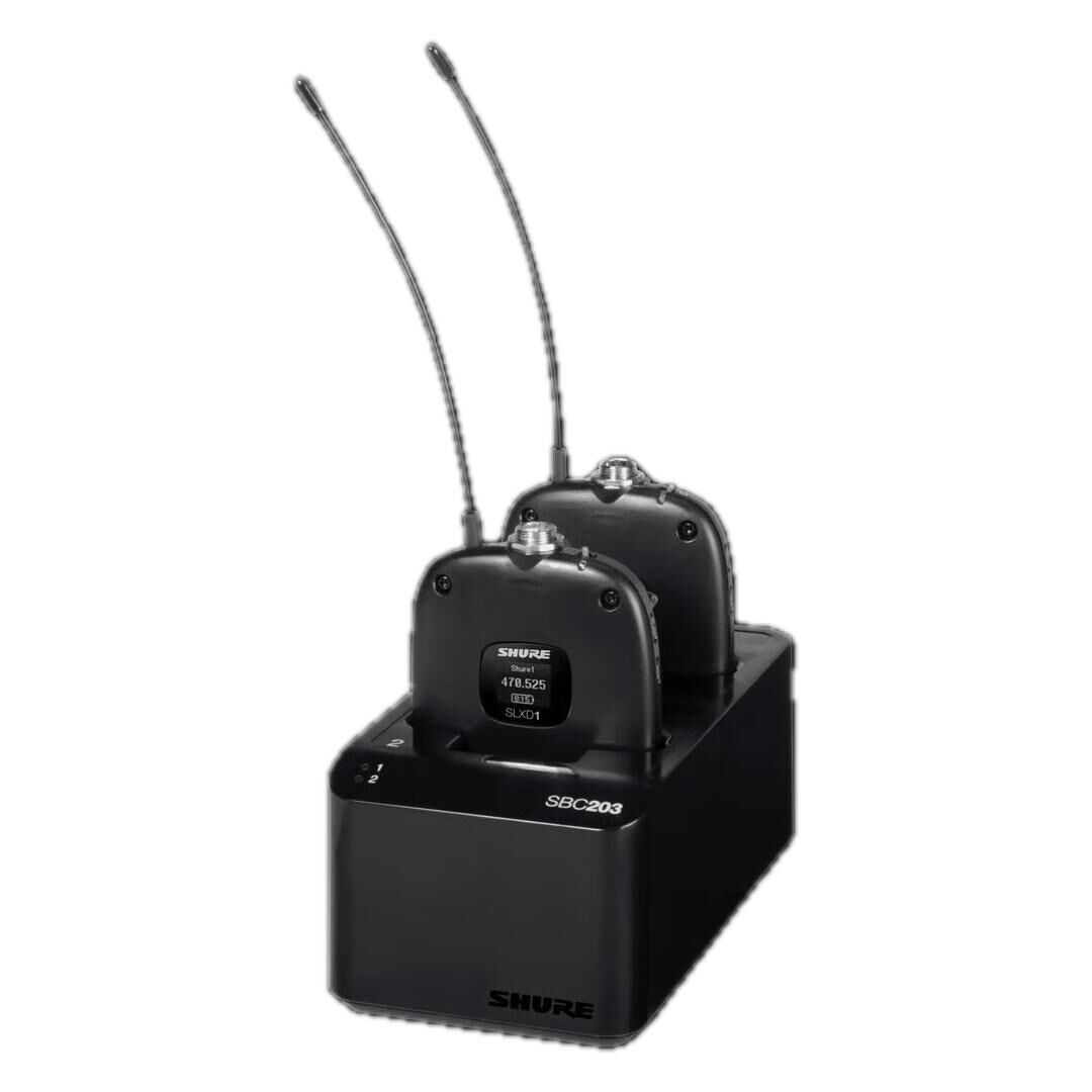 Die Shure SBC203 2-fach-Ladestation ist die perfekte Lösung für professionelle Anwender, die ihre SB903 Lithium-Ionen-Akkus schnell und zuverlässig aufladen möchten. Entwickelt für den Einsatz mit Shure SLX-D Wireless-Systemen, bietet diese Ladestation maximale Flexibilität und Effizienz. Mit zwei separaten Ladeschächten können Sie gleichzeitig zwei Akkus oder Sender laden – ideal für den Einsatz im Studio, auf der Bühne oder bei Veranstaltungen. Die kompakte Bauweise und die robuste Verarbeitung machen die SBC203 zu einem unverzichtbaren Zubehör für alle, die auf zuverlässige Funktechnik setzen.