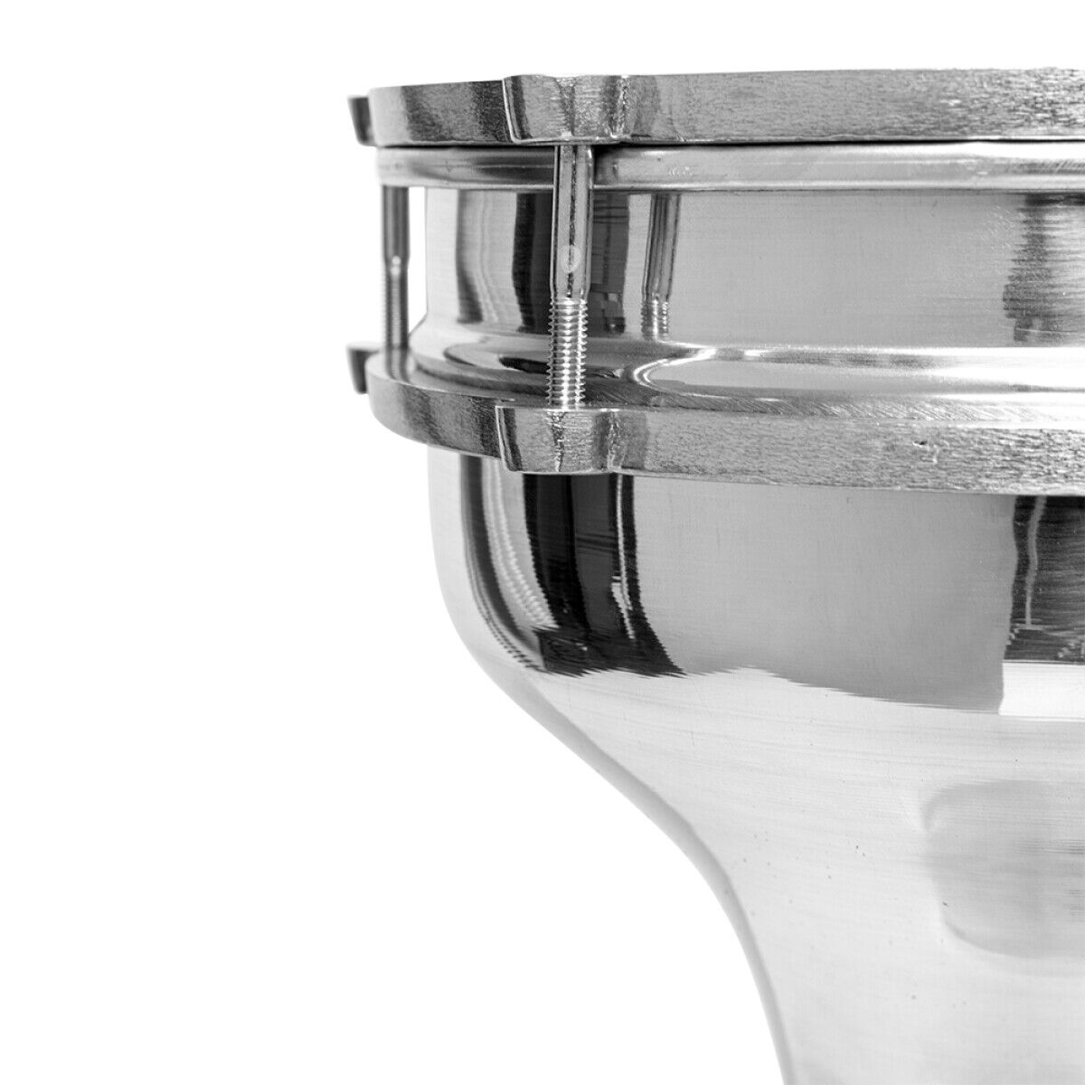 - Das glänzende, polierte Aluminiumgehäuse macht die Trommel zu einem echten Hingucker.