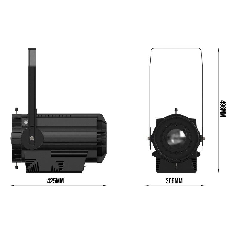 - Ausgestattet mit einer leistungsstarken 300-W-RGBAL-COB-LED für hohe Lichtausbeute und präzise Farbwiedergabe.