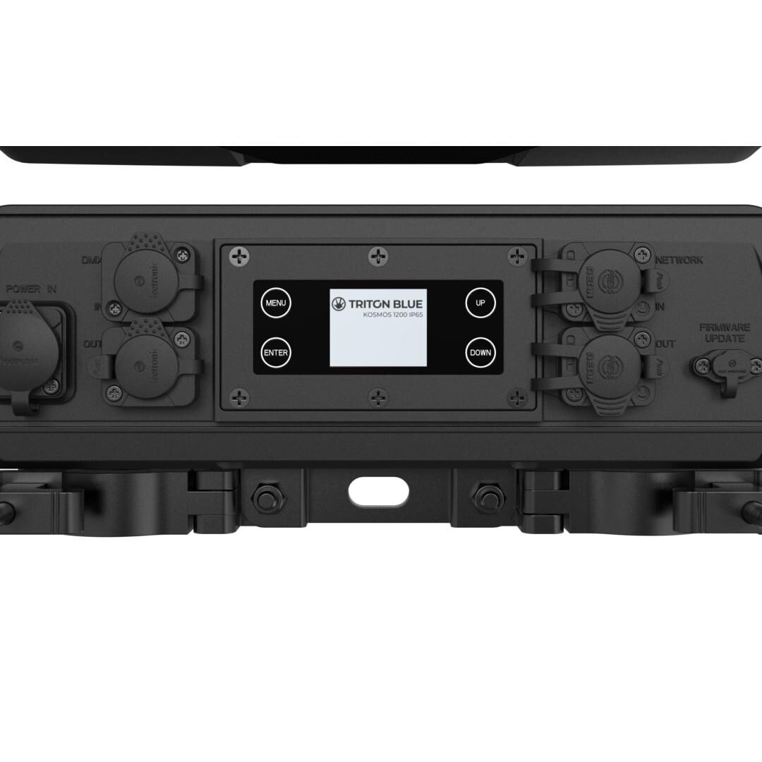 In der Steuerung ist der Kosmos 1200 vielseitig: DMX512 und RDM werden ebenso unterstützt wie netzwerkbasierte Protokolle Art-Net und sACN. Mehrere DMX-Modi (8/11/13/24/30/74/97 Kanäle) bieten je nach Anwendung schnellen Zugriff oder detaillierte Kontrolle. Für kreative Pixel- und Effektfahrten stehen 28 Segmente für Weißlicht und 14 Segmente für RGB-Licht zur Verfügung. Vier wählbare Dimmkurven sorgen für ein natürliches Ausfaden in Theater-, TV- oder Live-Umgebungen. Ein TFT-Display mit Bildrotation erleichtert das Handling, Firmware-Updates sind möglich.