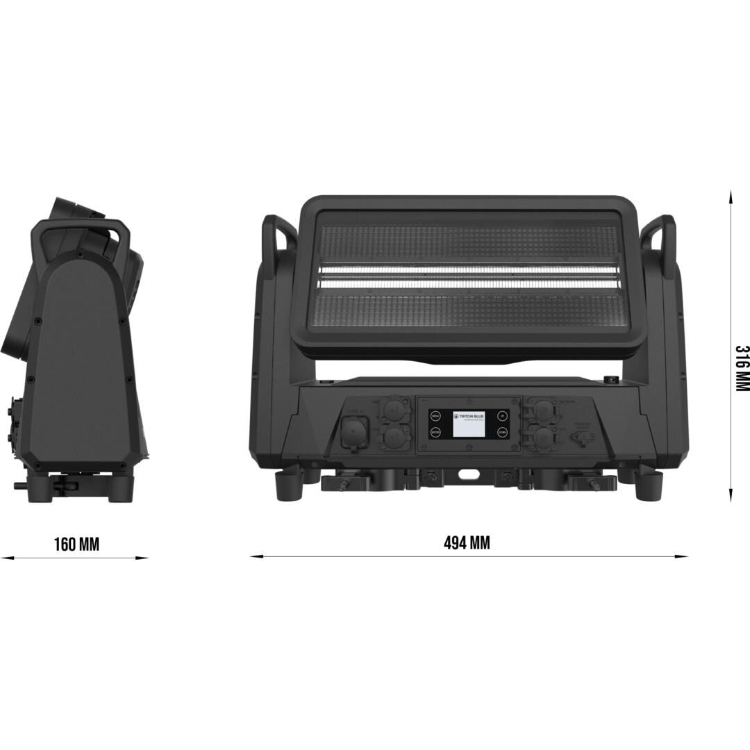 Der Triton Blue Kosmos 1200 IP65 ist ein leistungsstarker Washer-Blinder für den professionellen Outdoor- und Indoor-Einsatz. Als Moving Wash/Strobe/Blinder mit motorisiertem Tilt (180°) liefert er eine breitflächige Ausleuchtung mit 117° Abstrahlwinkel und hoher Lichtausbeute. Mit bis zu ≥72.600 Lumen und einer Lichtstärke von 1.600 Lux auf 5 Metern eignet sich das Modell Kosmos 1200 besonders für Festivals, Touring, Stadien, Live-Produktionen und architektonische Beleuchtungen, bei denen robuste Technik und zuverlässige Performance gefragt sind.
