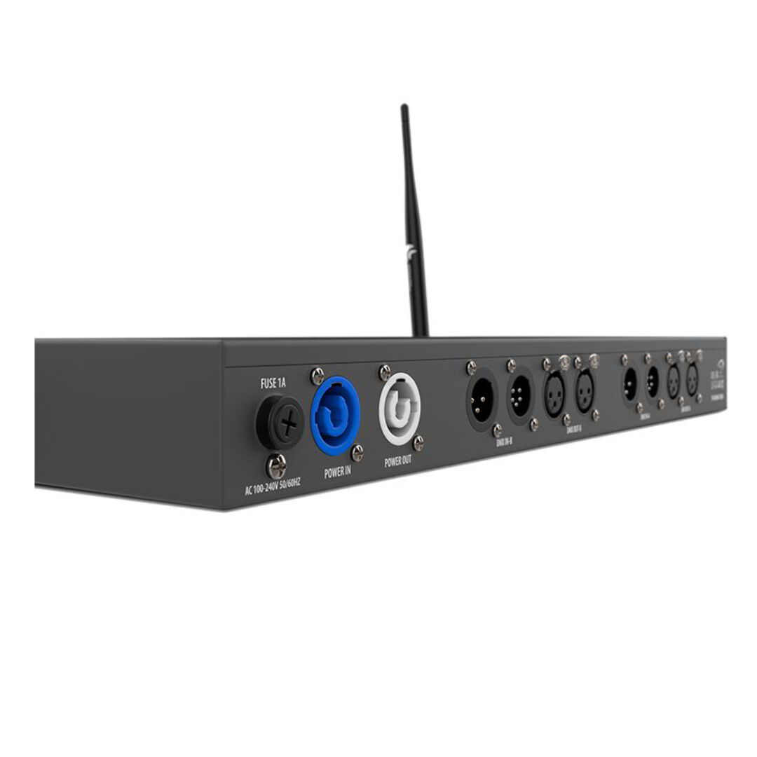 - DMX-Kapazität: bis zu 1.024 Kanäle (2 Universen; bis zu 16 Universen koexistierend)