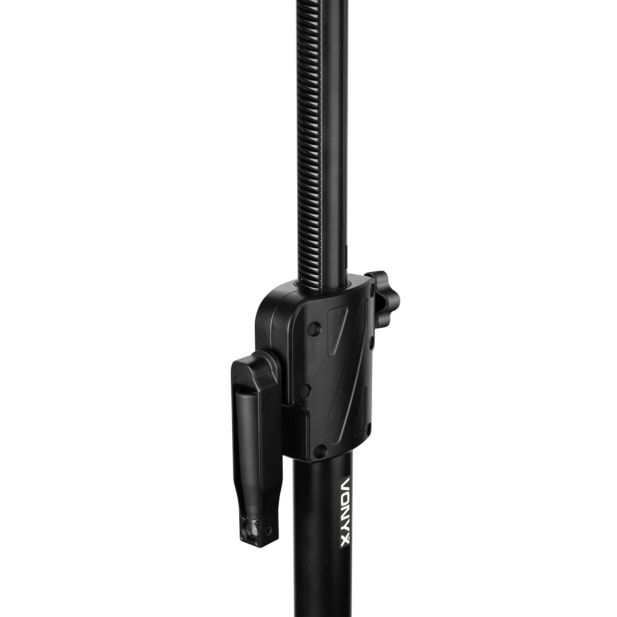 Die Stange verfügt über eine zusätzliche Sicherungsschraube, einen automatischen Verriegelungs- und Rückzugsmechanismus sowie einen M20-Gewindebolzen inklusive Adapter von M20 auf 35mm. Das einfache Handling und die robuste Bauweise machen die Vonyx LST93 zur idealen Wahl für professionelle Audioanwendungen.