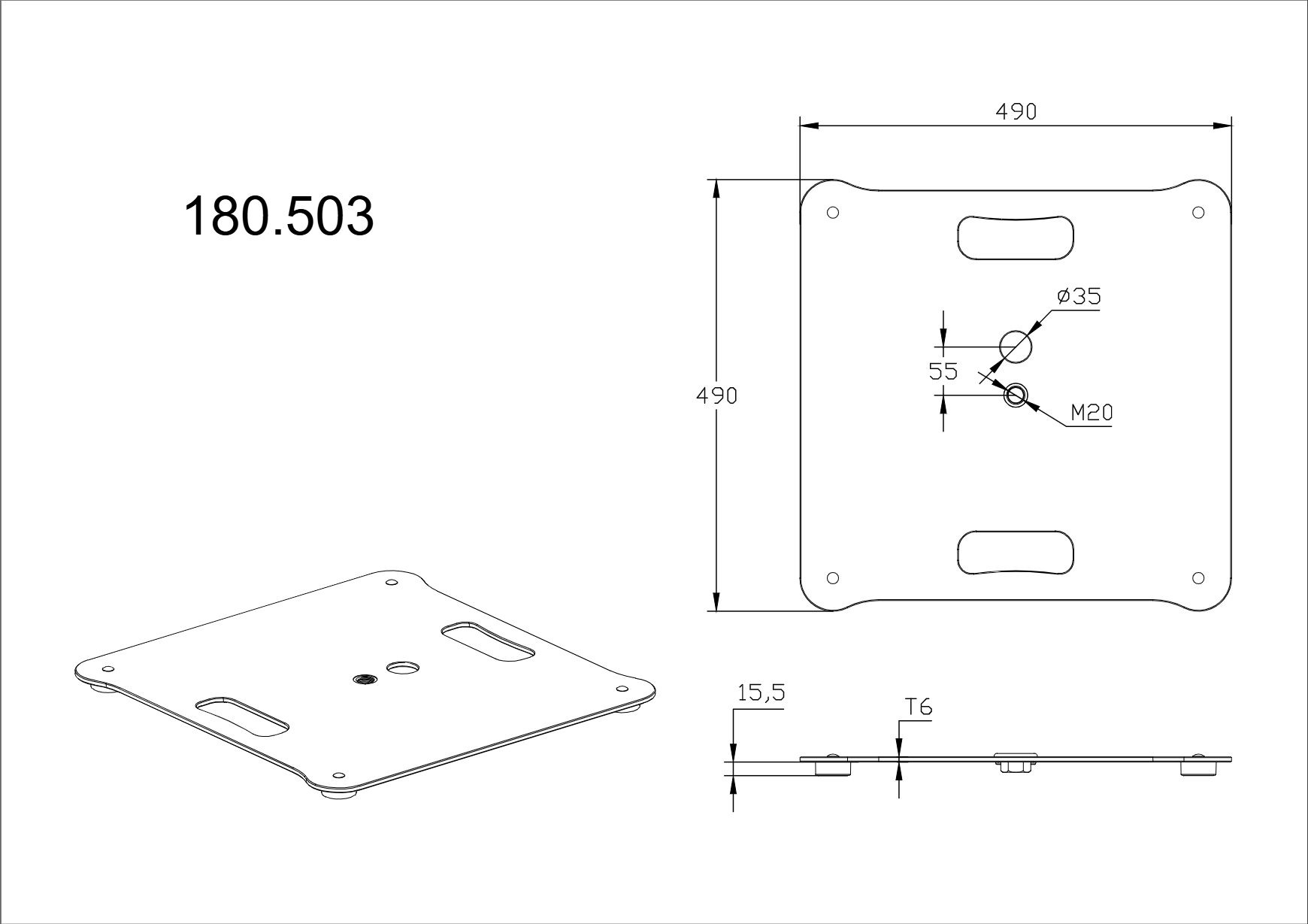 - Abmessungen (Basis): 490 x 490 mm