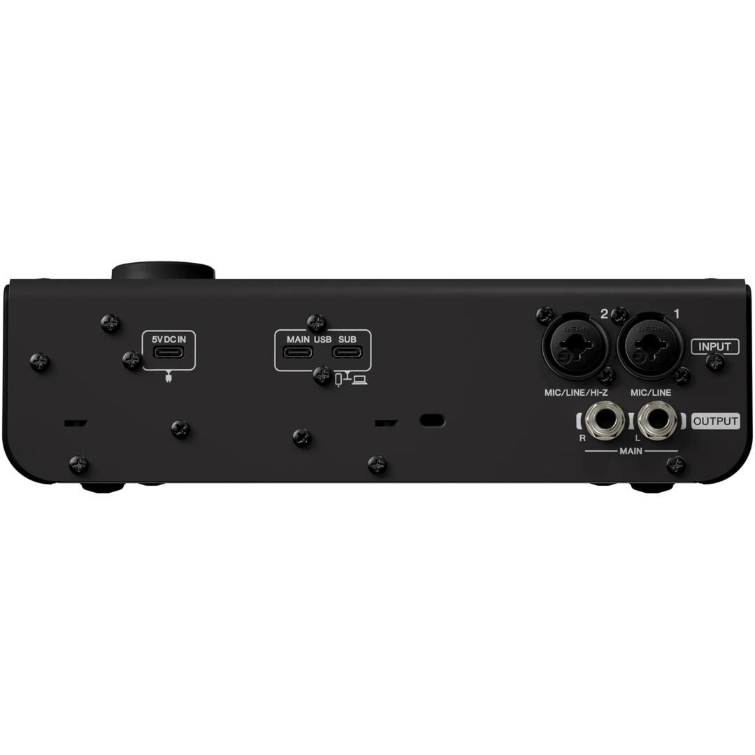 Klanglich setzt das URX22 auf Yamahas „True Sound“-Philosophie: Zwei URX-Preamps mit +48 V Phantomspeisung und bis zu 78 dB Verstärkung bilden die Basis für saubere, rauscharme Aufnahmen – von dynamischen bis hin zu kondensatorbasierten Mikrofonen. Mit einem Dynamikbereich von 115 dB (Input) bzw. 125 dB (symmetrischer MAIN-Out) und extrem niedriger Verzerrung von 0,0008 % liefert das Interface detailreiche, verlässliche Ergebnisse für Musikproduktion, Vocal-Recording und Content-Creation.